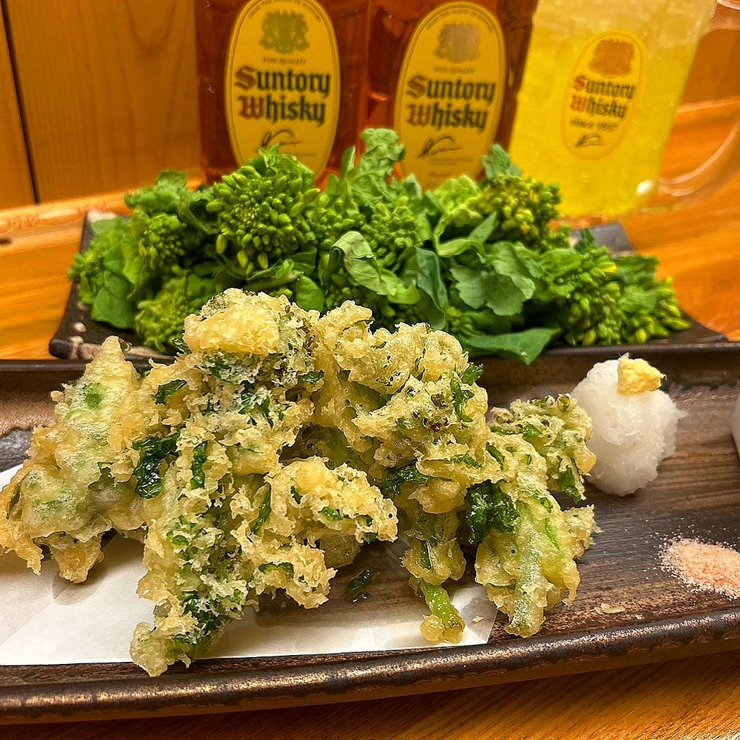 . 春を感じる ︎︎︎︎菜の花 .∘ の天ぷら ボリューム満点の1品です ꕤ︎︎·͜· . よかろうもん駅東口店 よかろうもん大通り本町店 にてお召し上がり…